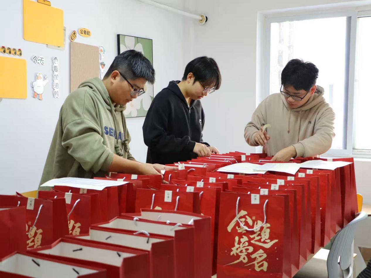始终牵挂着每一位奋力拼搏的考研学子。近日,由辅导员高欢韫和22级年级会策划,14位学生志愿者倾情加盟,为考研学子精心准备了包含文具、保暖物资及手写贺卡的“考研加油包”,贺卡上亲笔写着“一份耕耘,一份收获”“希望你厚积薄发,成为自己的太阳”等暖心寄语,每一份礼物都承载着第一会所