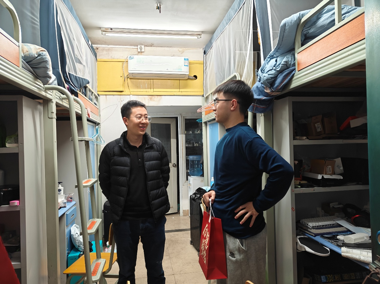 领导、辅导员及学生志愿者深入宿舍,为即将踏上考场的同学们送上暖心慰问与诚挚祝福。在宿舍里,老师们仔细询问大家的复习进度、备考状态及生活需求,耐心解答同学们在冲刺阶段遇到的学习困惑与心理压力。鼓励同学们调整心态、沉着应战,以扎实的专业积累和从容的应考状态奔赴考场,同时叮嘱大家注意劳逸结合,保持良好的身心状态。