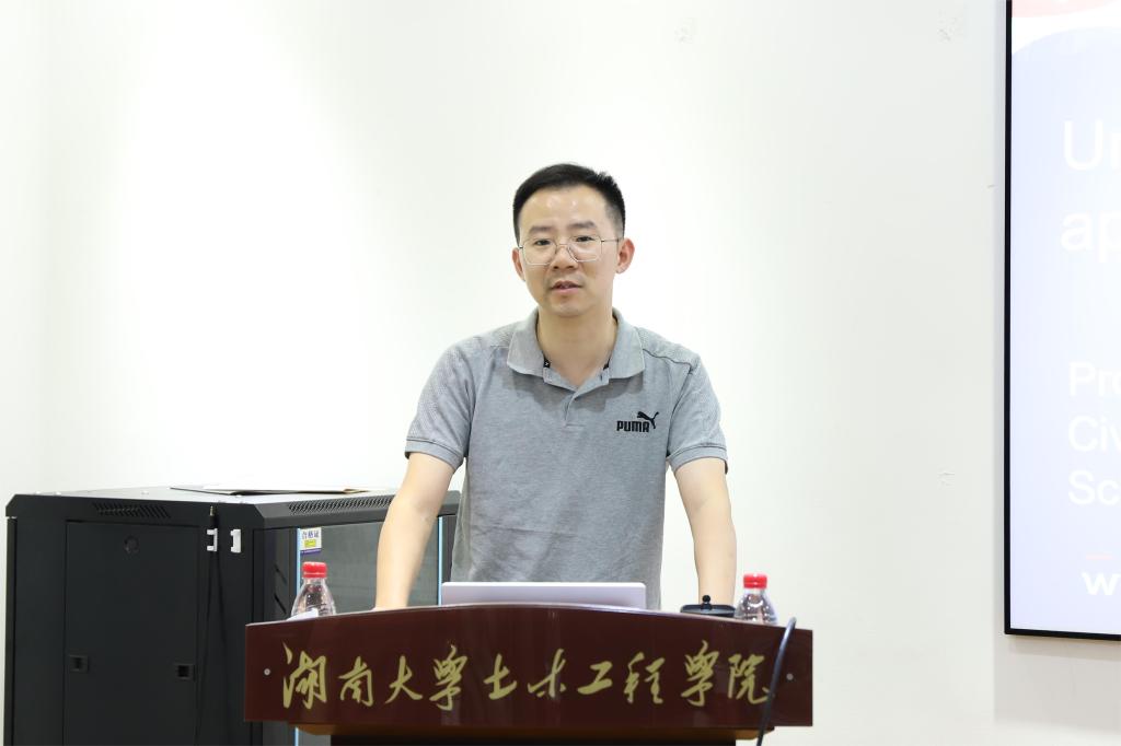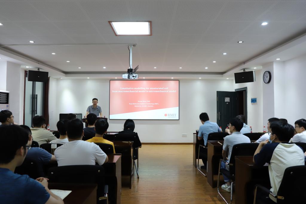 师生作题为《Modelling unsaturated soil behavior:from macro-mrchanical model to micro-mechanical madel》的专题讲座,第一会所