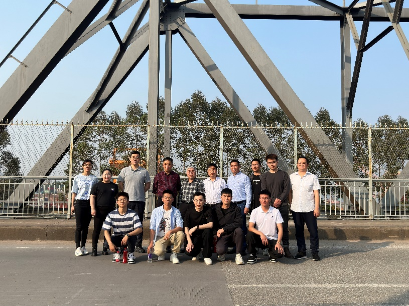 师生参观了1984年建成的广东肇庆马房大桥,该桥为14(跨)×64 m简支钢箱梁桥。2011年全面翻修工程中,第11跨采用了邵旭东教授团队研发的钢-UHPC轻型组合桥面结构目前UHPC层依然完好,未出现开裂或破损现象。
