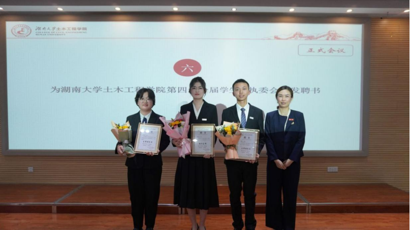 党委副书记曾欢欢老师、团委副书记丛珊珊老师为第四十一届学生会执行委员会委员颁发证书并合影留念。